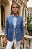 Veste Vesnove en laine et lin - Carreaux bleu azur