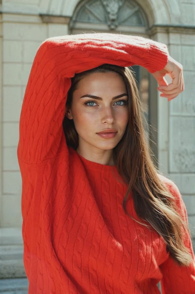 Apportez de la vitalité à vos looks avec le pull Albie en orange lumineux. Fabriqué en Italie, il séduit par ses torsades élégantes et sa matière noble, mélange de laine mérinos et de cachemire. Un essentiel chaud et raffiné qui allie confort et chic.